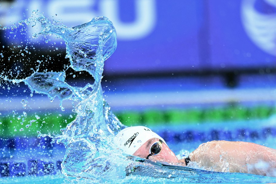 Li Bingjie of China competes during the Women's 800m Freestyle final of swimming at the 31st FISU Summer World University Games in Chengdu, southwest China's Sichuan Province, Aug. 6, 2023. (Xinhua/Wu Gang)
