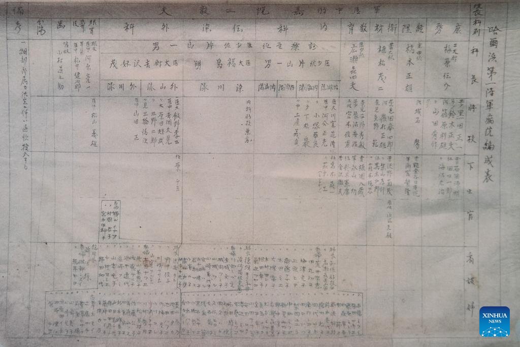 HARBIN, Aug. 7 (Xinhua) -- An original material from a Japanese army hospital that cooperated with Unit 731, a Japanese germ warfare army during World War II, has gone on public display for the first time in Mudanjiang City, northeast China's Heilongjiang Province.