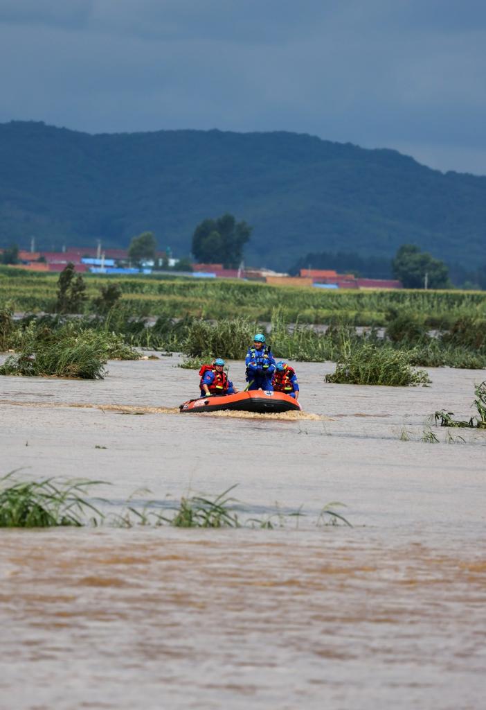 Rescuers search in Kaiyuan Town of Shulan City, northeast China's Jilin Province, Aug. 6, 2023. (Xinhua/Yan Linyun)