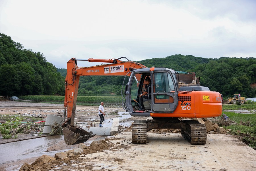SHULAN, Aug. 8 (Xinhua) -- Shulan had experienced continuous rainy weather since last Tuesday night. This round of rain has basically ended. The local government has mobilized various rescue forces to relocate residents, repair roads, and restore power and communication facilities to resume people's normal lives as soon as possible.