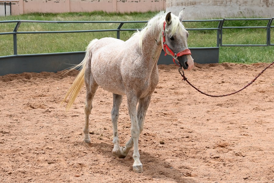 This photo taken on Aug. 6, 2023 shows a Shandan stallion at the Shandan Horse Breeding Farm in Shandan County, Zhangye City, northwest China's Gansu Province. (Xinhua/Fan Peishen)