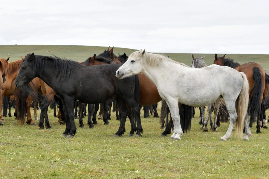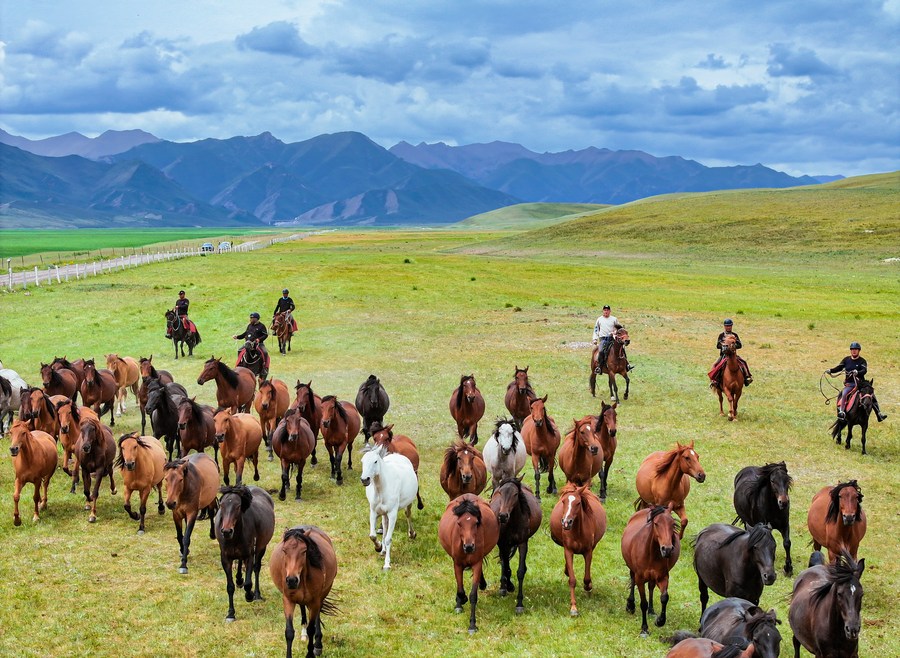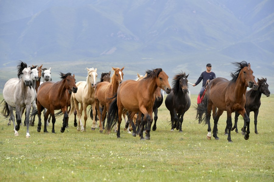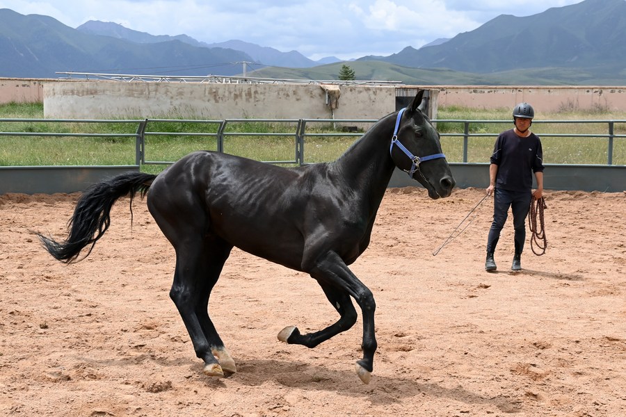 SHANDAN, Aug. 8 (Xinhua) -- Lying at the foothill of the Qilian Mountains, the Shandan Horse Breeding Farm has a history of over 2,000 years and now serves as a major horse breeding facility in China. Shandan horse, a species exclusively bred by the farm, boasts physical fitness and good endurance.