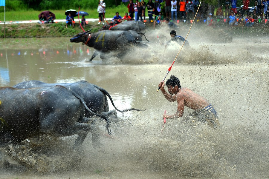 CHONBURI, Thailand, Aug. 9 (Xinhua) -- A batch of buffalo racers competed in east Thailand's Chonburi in the century-old annual Buffalo Race to celebrate the start of the paddy-sowing season.