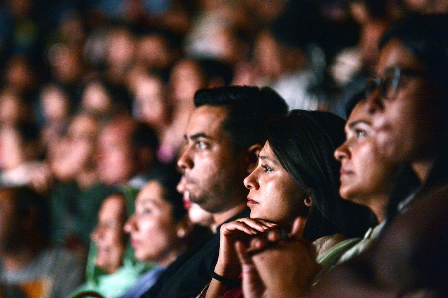 People watch "Ba'Tie Girl", a film co-produced by Pakistani and Chinese producers, at the Pakistan National Council of Arts in Islamabad, capital of Pakistan on Aug. 3, 2023. (Xinhua/Ahmad Kamal)