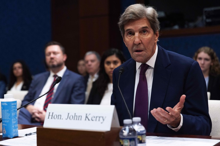 U.S. Special Presidential Envoy for Climate John Kerry testifies during a hearing before the House Foreign Affairs Oversight and Accountability Subcommittee in Washington, D.C., the United States, on July 13, 2023. (Photo by Aaron Schwartz/Xinhua)