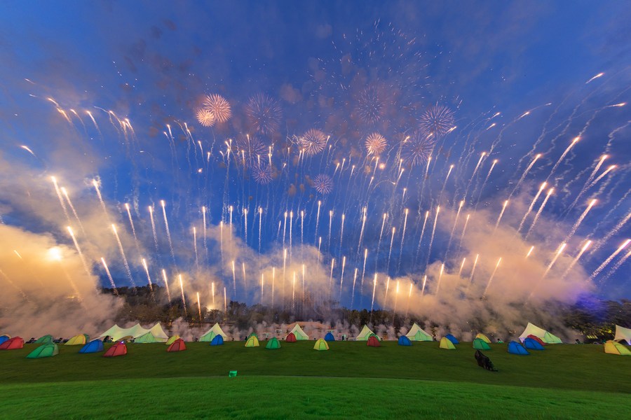 Fireworks are seen during the closing ceremony of the 31st FISU Summer World University Games in Chengdu, southwest China's Sichuan Province, Aug. 8, 2023. (Xinhua/Huang Wei)