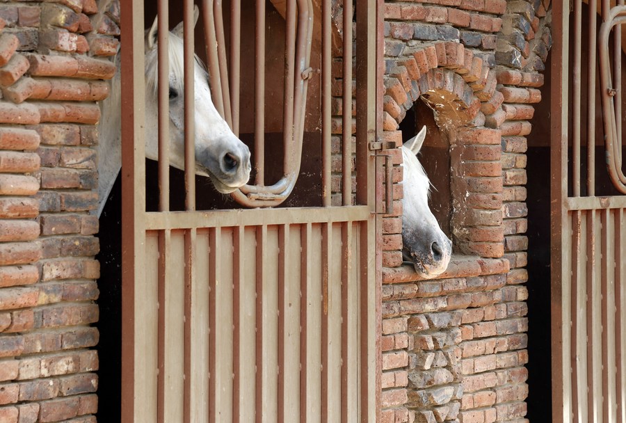 Horses are kept in the stable to avoid heat weather at an equestrian club in Sanaa, Yemen, on Aug. 4, 2023. (Photo by Mohammed Mohammed/Xinhua)