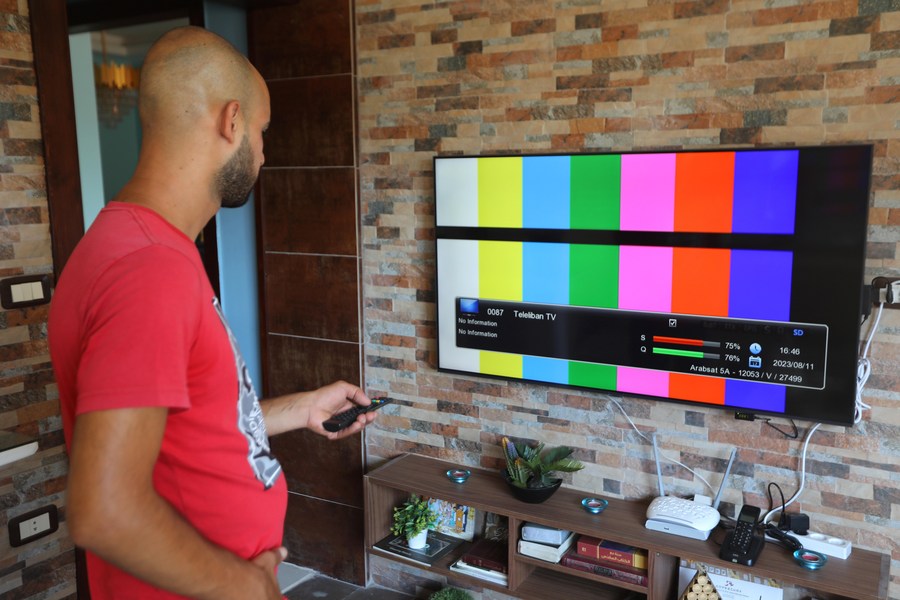 A man tries to watch a TV show in Beirut, Lebanon, on Aug. 11, 2023. (Xinhua/Bilal Jawich)■