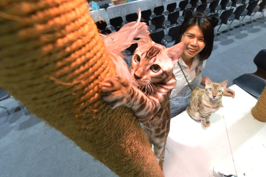 Pet cats are seen during a pet expo in Bangkok, Thailand, on Aug. 10, 2023. (Xinhua/Rachen Sageamsak)