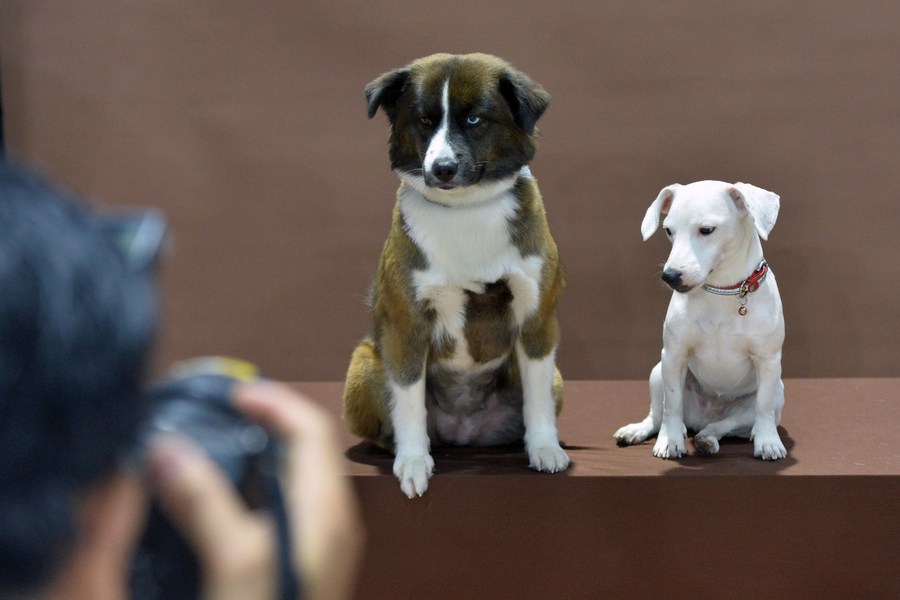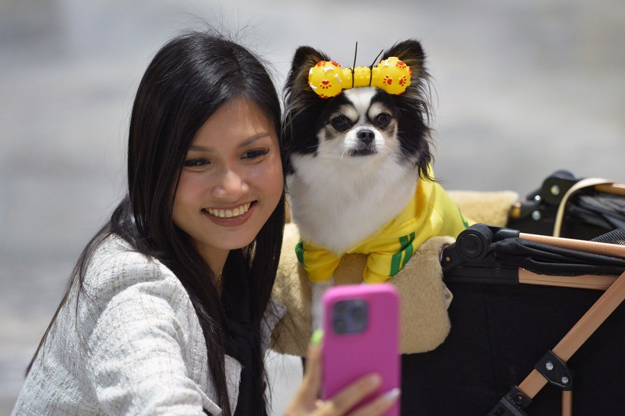 A visitor takes photos of pet dogs at the Queen Sirikit National Convention Center in Bangkok, Thailand, on Aug. 10, 2023. (Xinhua/Rachen Sageamsak)