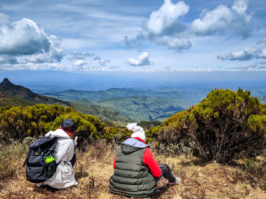 Tourists enjoy the view on Elephant Hill in the Aberdare National Park, Kenya, March 18, 2023. (Xinhua/Li Yahui)