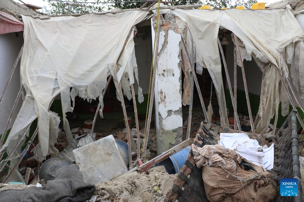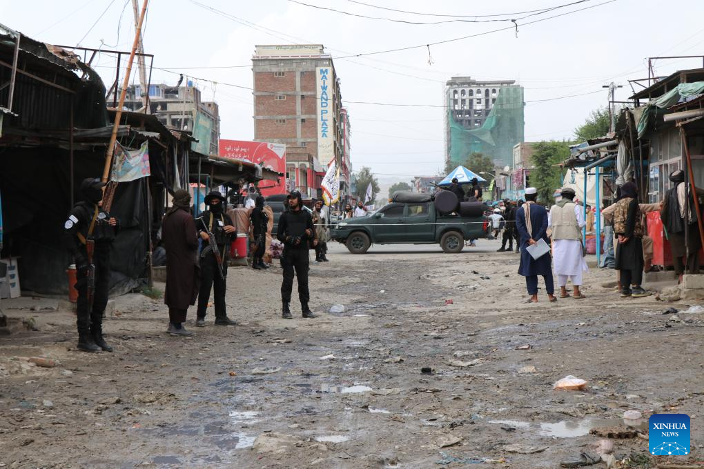 This photo taken on Aug. 14, 2023 shows the site of a blast in Khost, Afghanistan. At least three people were killed and seven others injured as a blast shocked Khost city of east Afghanistan's Khost Province on Monday, according to a statement of the provincial government. (Photo by Yusuf Mangal/Xinhua)
