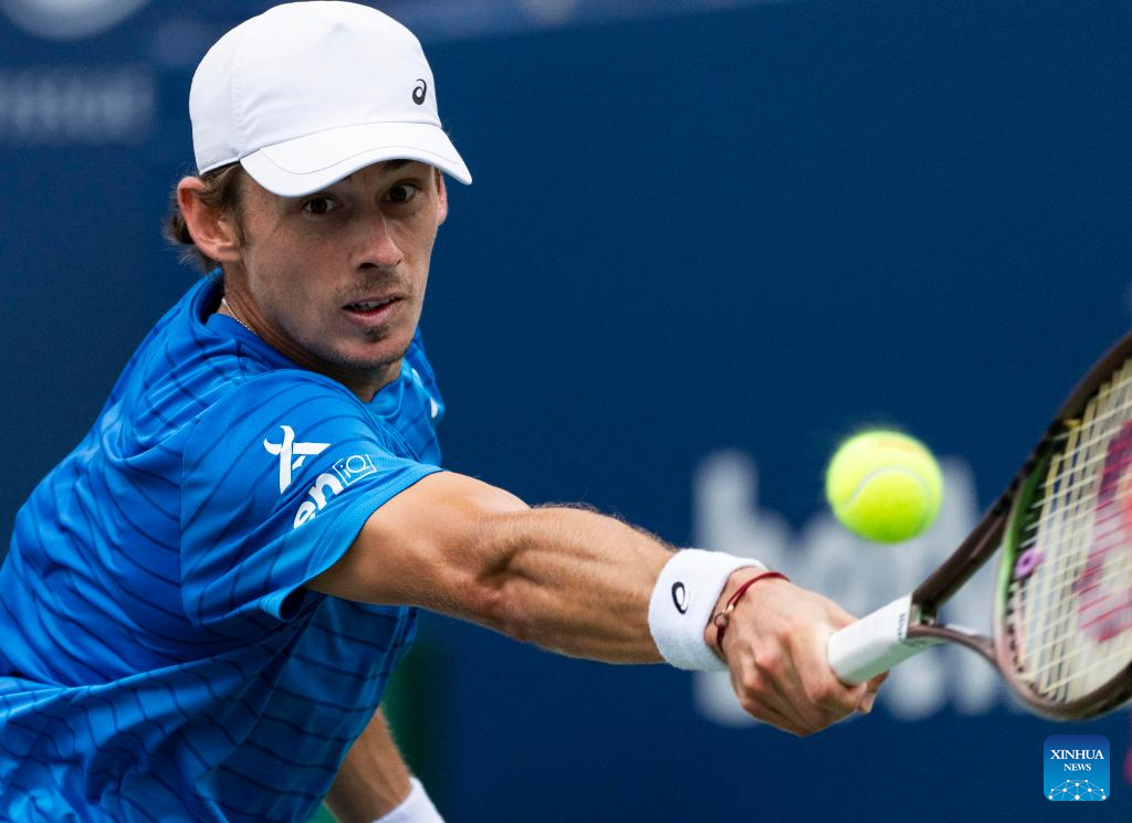 Alex De Minaur of Australia returns the ball during the men's singles final match between Jannik Sinner of Italy and Alex De Minaur of Australia at the 2023 National Bank Open in Toronto, Canada, on Aug. 13, 2023. (Photo by Zou Zheng/Xinhua)