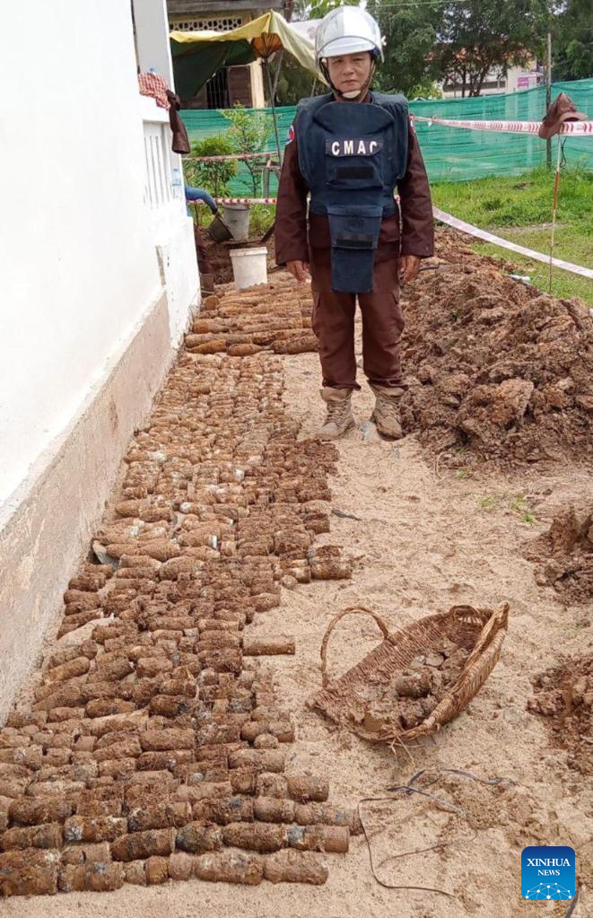 PHNOM PENH, Aug. 14 (Xinhua) -- The Cambodian Mine Action Center (CMAC) experts have recovered more than 2,000 pieces of war-era unexploded ordnance (UXO) buried on a school campus in northeastern Kratie province, a mine clearance chief said on Monday.