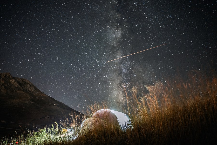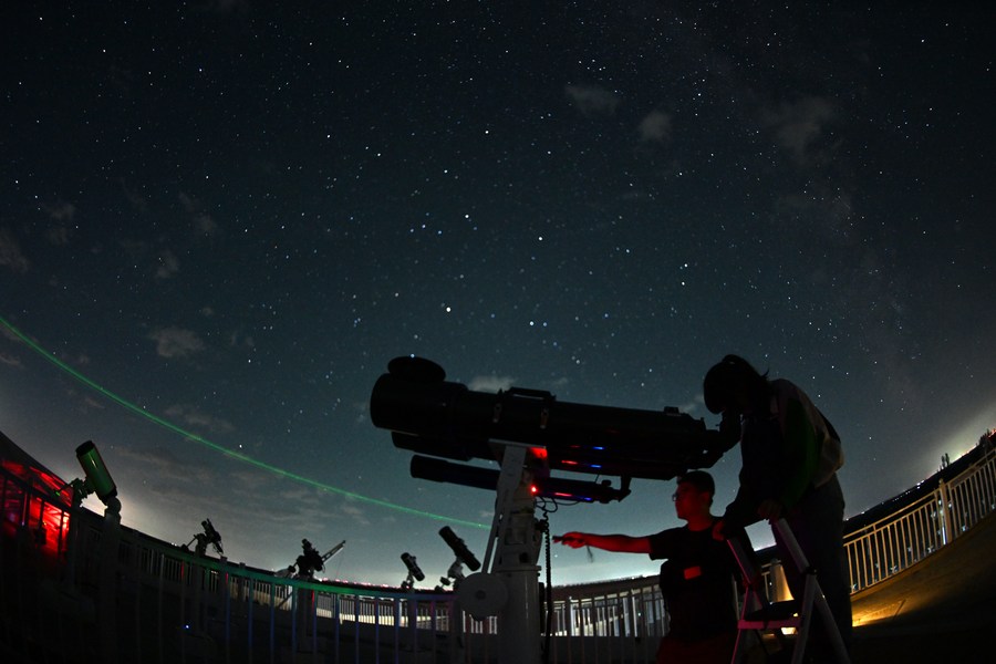 Astronomy enthusiasts watch the stars at Haba Lake Observatory, Yanchi County, northwest China's Ningxia Hui Autonomous Region, Aug. 13, 2023. (Xinhua/Wang Peng)
