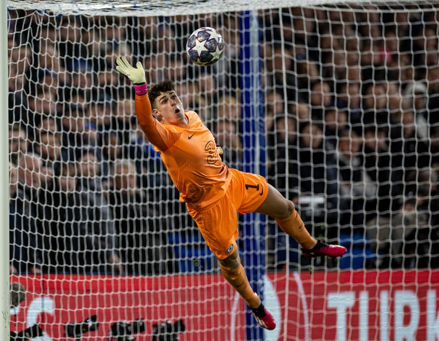 Chelsea's goalkeeper Kepa Arrizabalaga makes a save during the UEFA Champions League Round of 16 second Leg match against Borussia Dortmund in London, Britain on March 7, 2023. (Xinhua)