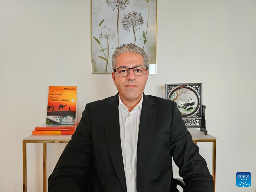 Hussein Askary, vice chairman of the Belt and Road Institute in Sweden (BRIX), poses for a photo in Stockholm, Sweden, on Aug. 16, 2023. The projects proposed by China under its Belt and Road Initiative (BRI) have brought tangible benefits to the countries and peoples of Europe and helped debunk the so-called "decoupling and de-risking" fallacies, a Swedish expert told Xinhua in a recent interview. (Xinhua)