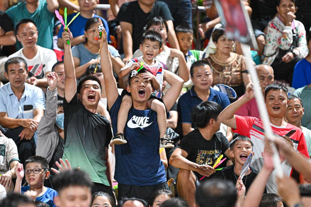 A boy cheers for his team during a village volleyball match in Wenchang, south China's Hainan Province, Aug. 13, 2023. (Xinhua/Pu Xiaoxu)