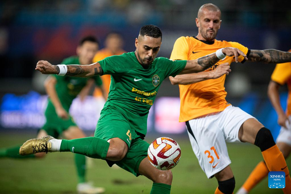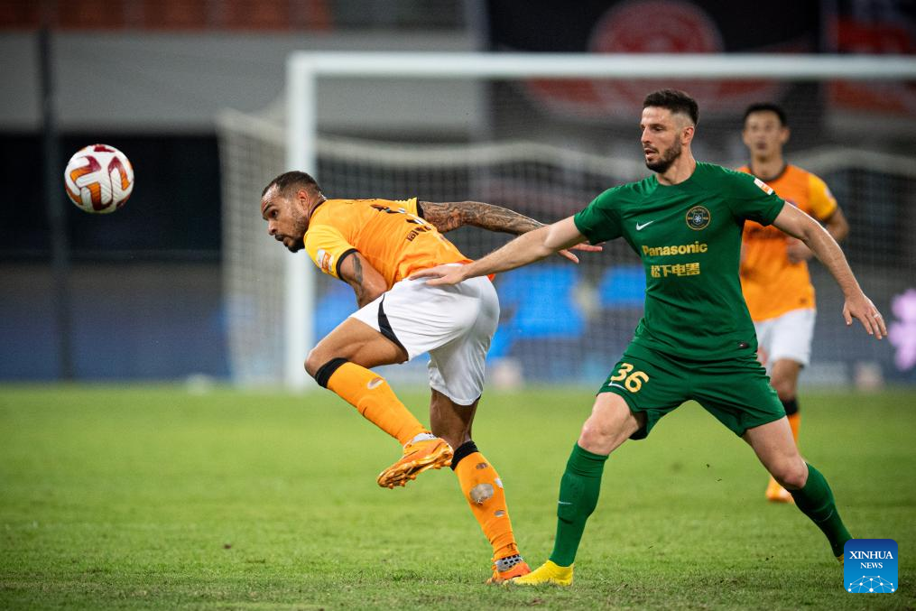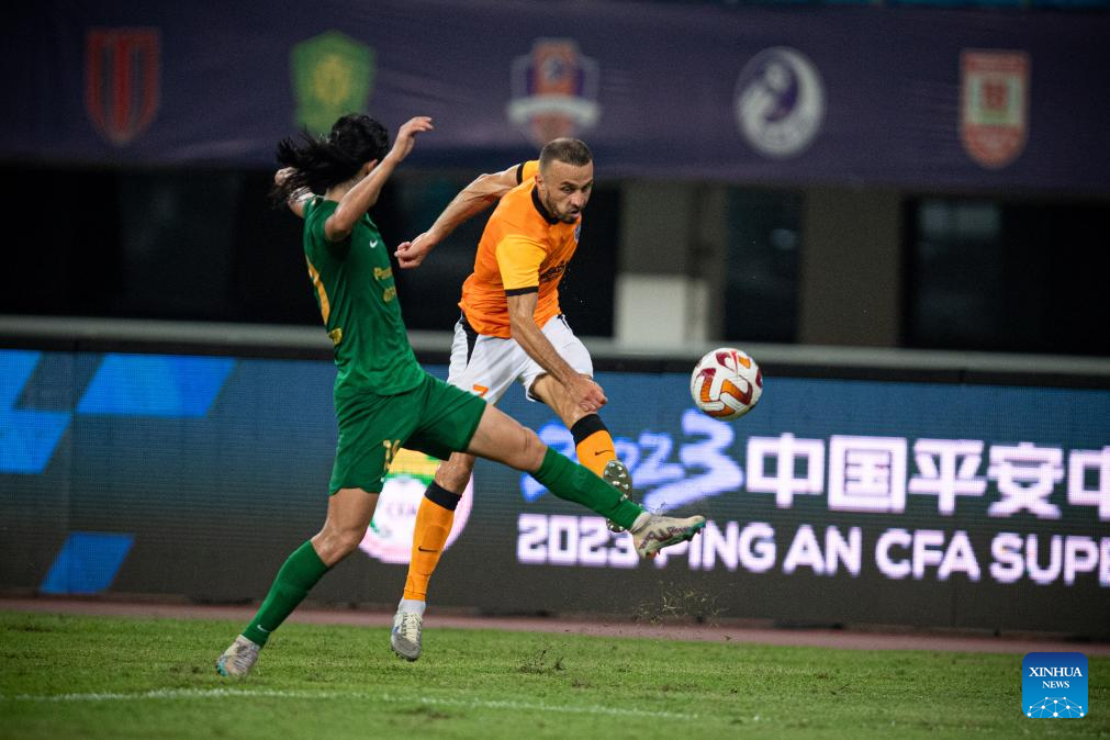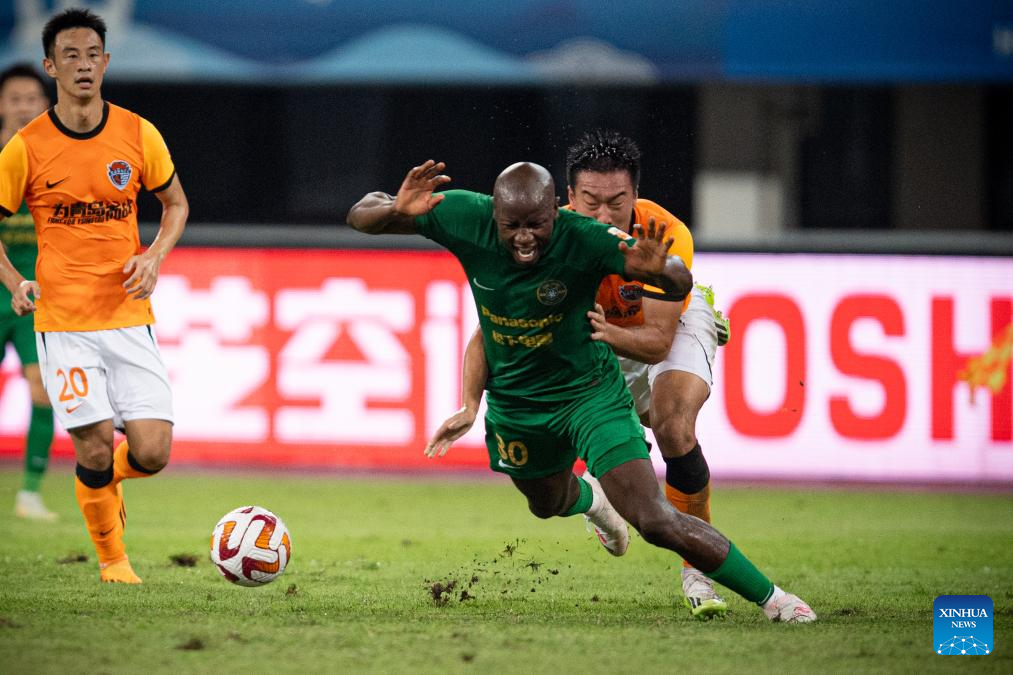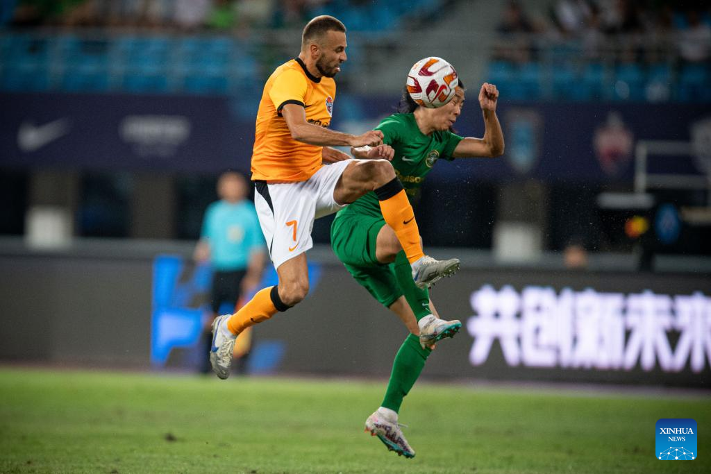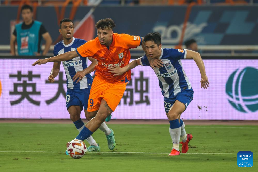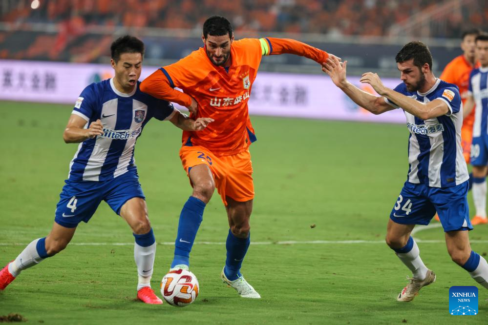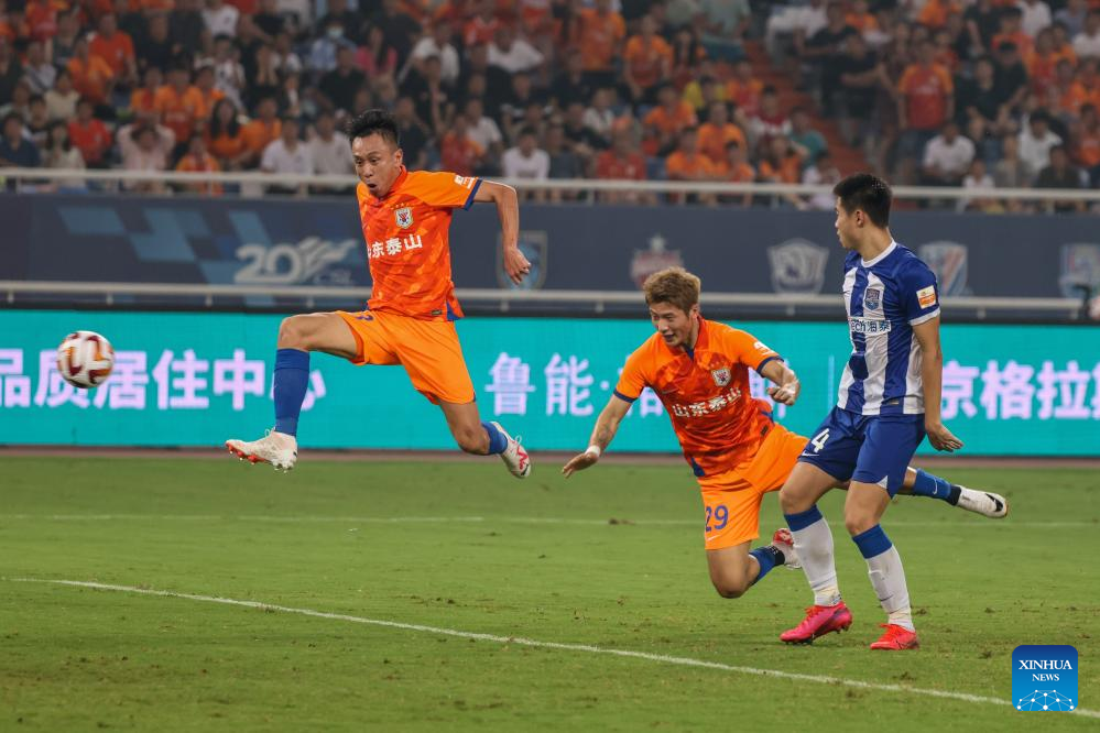JINAN, China, Aug. 18 (Xinhua) -- A last-gasp goal saw Shandong Taishan edge Tianjin Jinmen Tigers 1-0, while Shanghai Port drew 1-1 with Meizhou Hakka in the 2023 Chinese Super League on Friday.