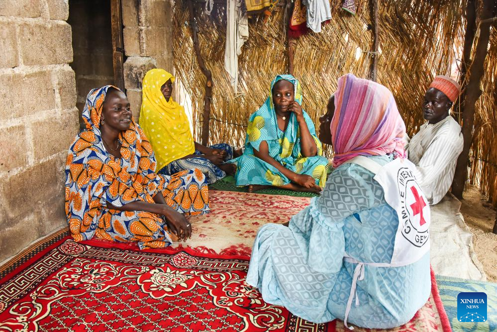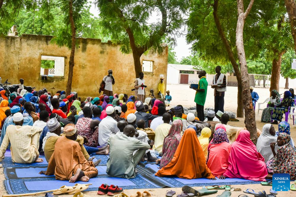 People follow the advice of the International Committee of the Red Cross (ICRC) psychologists in Kerawa, Far North region, Cameroon, Aug. 7, 2023. (Photo by Kepseu/Xinhua)