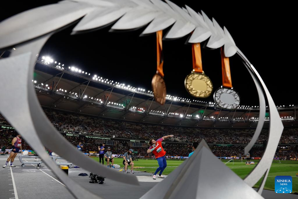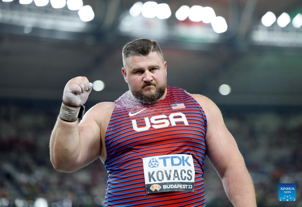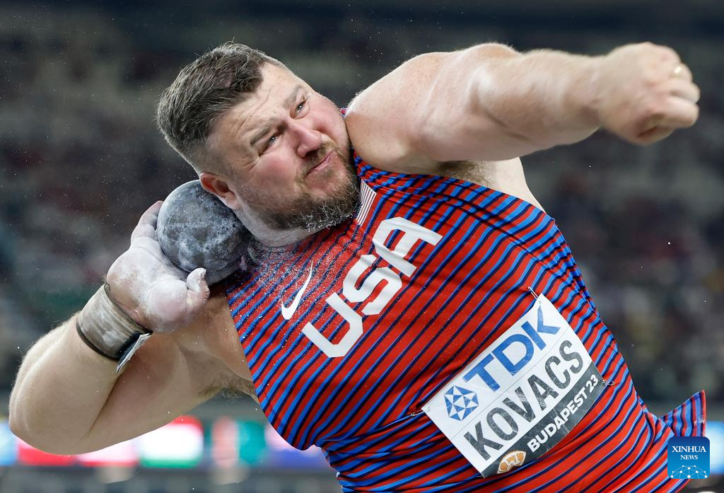 BUDAPEST, Aug. 19 (Xinhua) -- American Ryan Crouser defended his world title in the men's shot put with a new Championship record of 23.51 meters here on Saturday.
