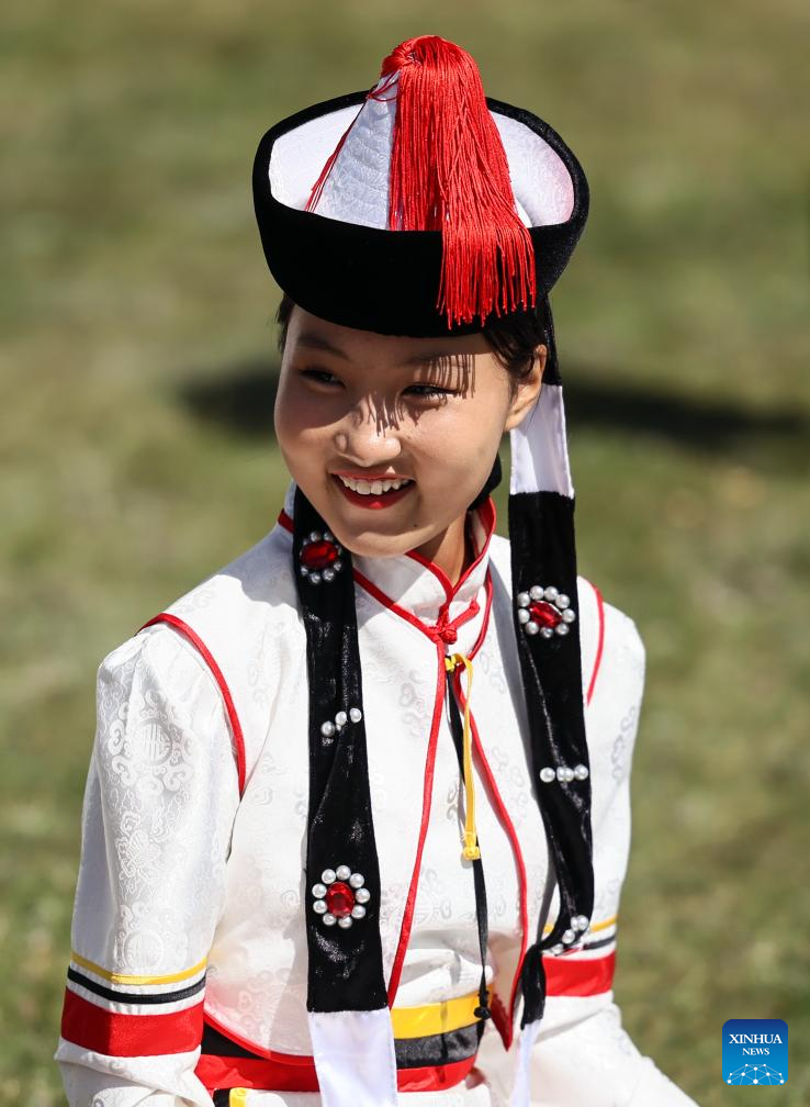 An actress is pictured at a cultural festival in the Nalaikh District of Ulan Bator, Mongolia, on Aug. 18, 2023. A cultural festival to promote Mongolia's nomadic intangible culture and the development of the tourism sector kicked off here on Friday.