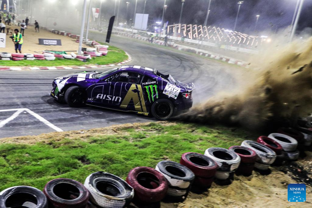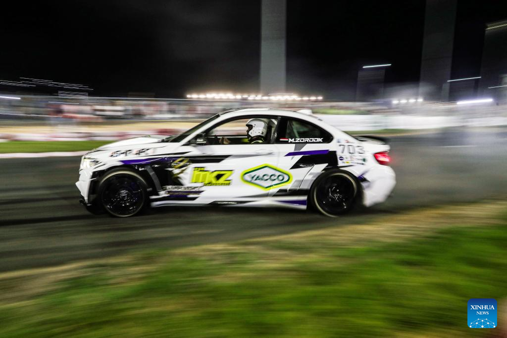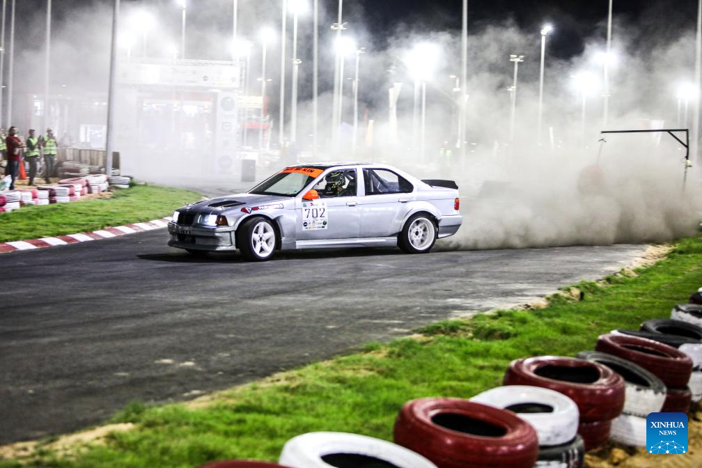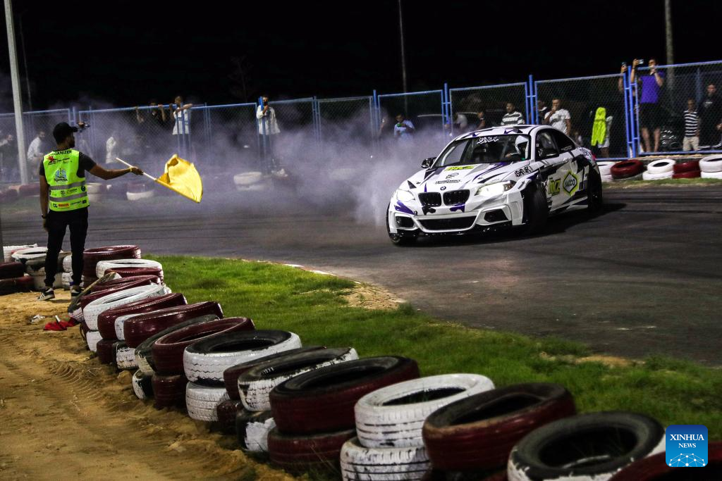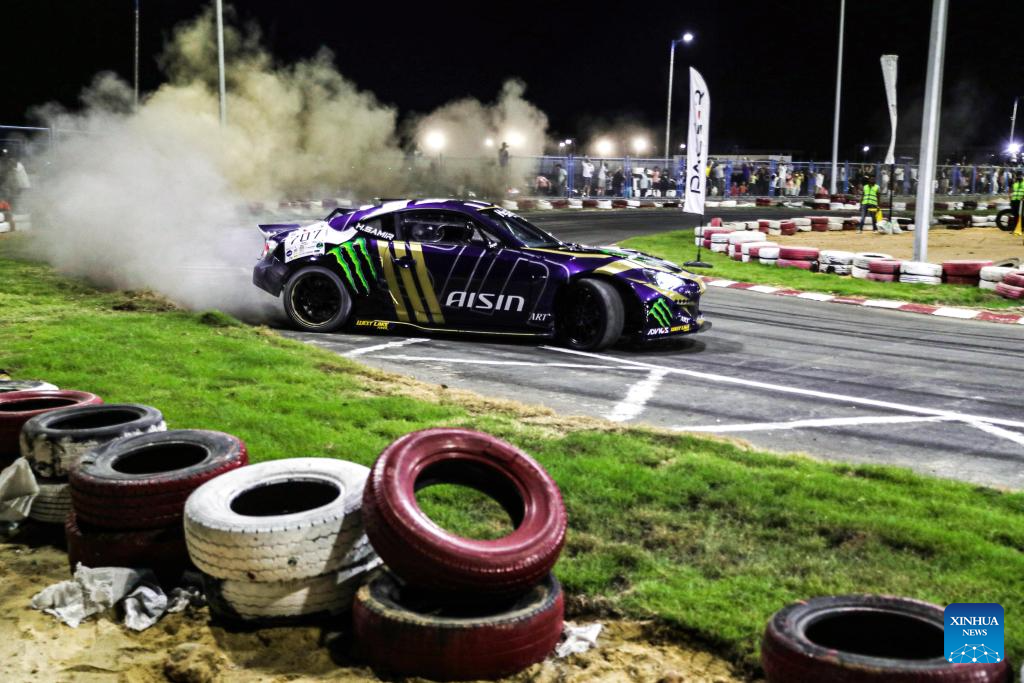 A competitor performs during the drift challenge of Misr International Motorsport Championship in New Alamein City, Egypt, Aug. 19, 2023. (Xinhua/Ahmed Gomaa)