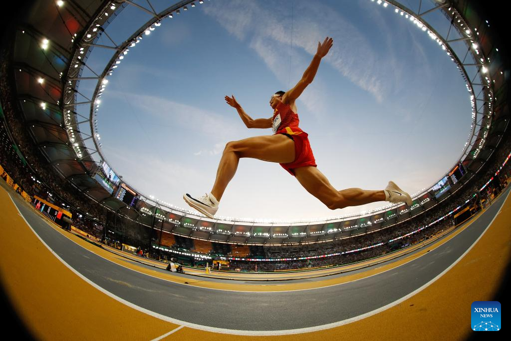 Su Wen of China competes during the Men's Triple Jump Qualifications of the World Athletics Championships Budapest 2023 in Budapest, Hungary on Aug. 19, 2023. (Xinhua/Wang Lili)