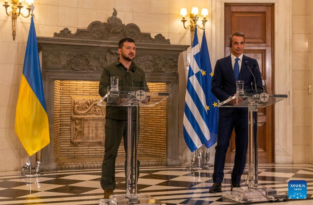 ATHENS, Aug. 21 (Xinhua) -- Ukrainian President Volodymyr Zelensky paid a visit to Greece on Monday, where he met with European leaders, Greek national broadcaster ERT has reported.