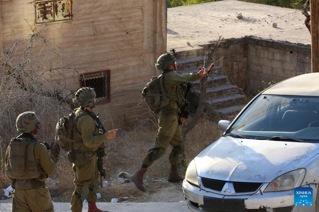 Israeli soldiers detain a Palestinian protester during an Israeli raid in the village of Beita near the West Bank city of Nablus, on Aug. 21, 2023. Dozens of Palestinians were injured on Monday during clashes with the Israeli soldiers at the Gaza border with Israel and the West Bank, Palestinian medics and eyewitnesses said. (Photo by Nidal Eshtayeh/Xinhua)