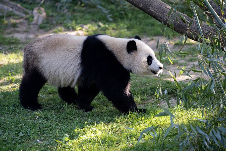 This photo taken on April 19, 2023 shows giant panda Xiao Qi Ji at the Smithsonian's National Zoo in Washington, D.C., the United States. (Xinhua/Liu Jie)
