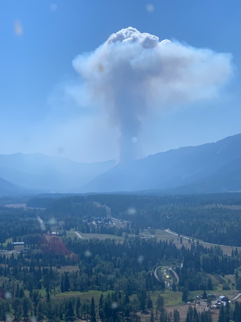 This aerial photo taken on Aug. 13, 2023 shows wildfires near Lladnar Creek in British Columbia, Canada. (BC Wildfire Service/Handout via Xinhua)