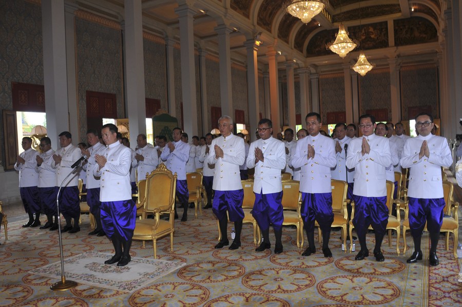 The premier, along with his newly-approved cabinet members, took an oath at the Royal Palace under the auspices of King Norodom Sihamoni, Cambodia's state-run Agence Kampuchea Presse (AKP) reported.