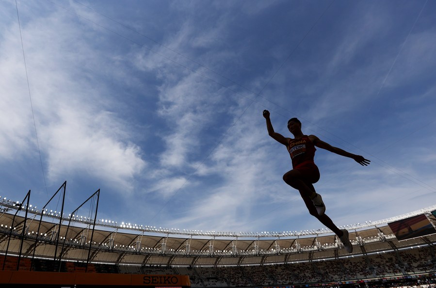Wang Jianan of China competes during the Men's Long Jump Qualification of the World Athletics Championships Budapest 2023 in Budapest, Hungary on Aug. 23, 2023. (Xinhua/Li Ming)