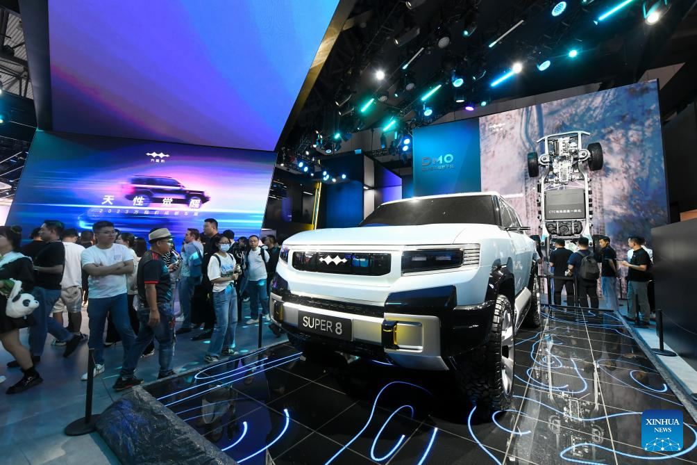 People visit the Chengdu Motor Show 2023 in Chengdu, southwest China's Sichuan Province, Aug. 25, 2023. The Chengdu Motor Show 2023 kicked off here on Friday. Some 1,600 cars of more than 120 brands from home and abroad are exhibited at the show. (Xinhua/Tang Wenhao)