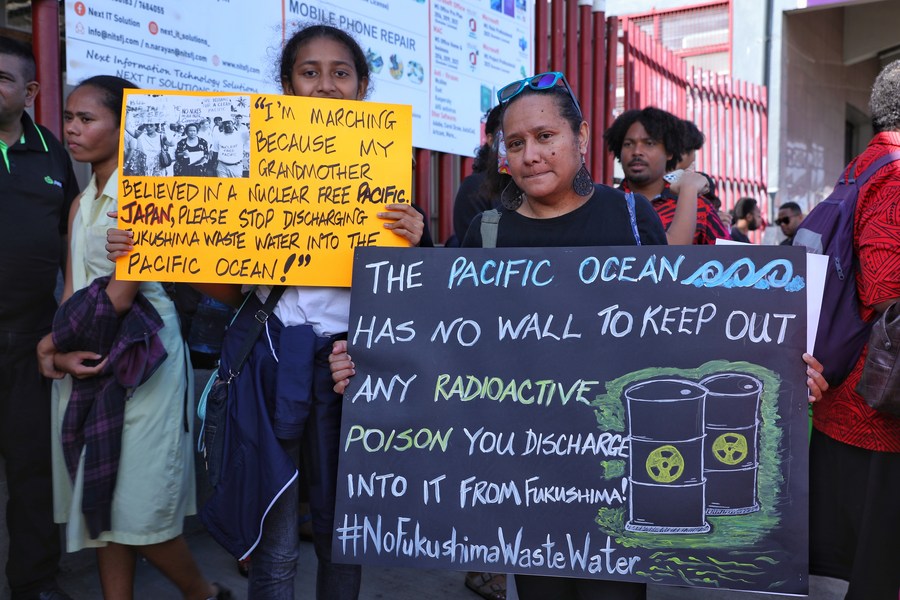 Hundreds of Fijian protesters, led by the Fiji Non-government organization Coalition on Human Rights, called for international actions to halt Japan's dumping of nuclear-contaminated wastewater to protect the ocean and the future generations.