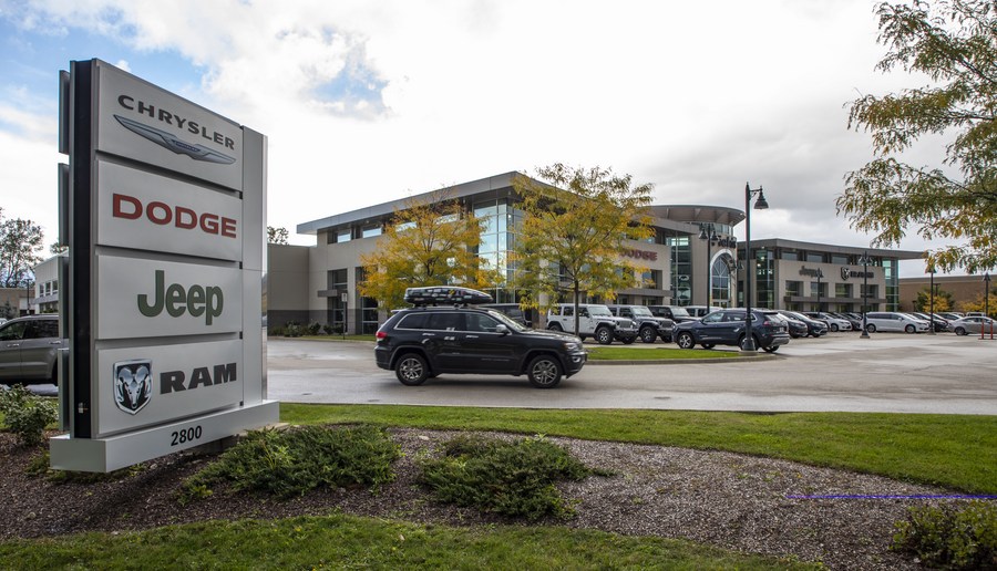 Photo taken on Oct. 1, 2020 shows a Fiat Chrysler Automobiles (FCA) dealership in northern suburbs of Chicago, Illinois, the United States. (Photo by Joel Lerner/Xinhua)