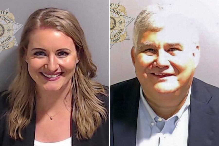 This combined photo shows Jenna Ellis (L), former U.S. President Donald Trump's previous lawyer, and David Shafer, the former chairman of the Georgia Republican Party, in their mug shots in Georgia, the United States. (Photo credit: Fulton County Sheriff's Office)