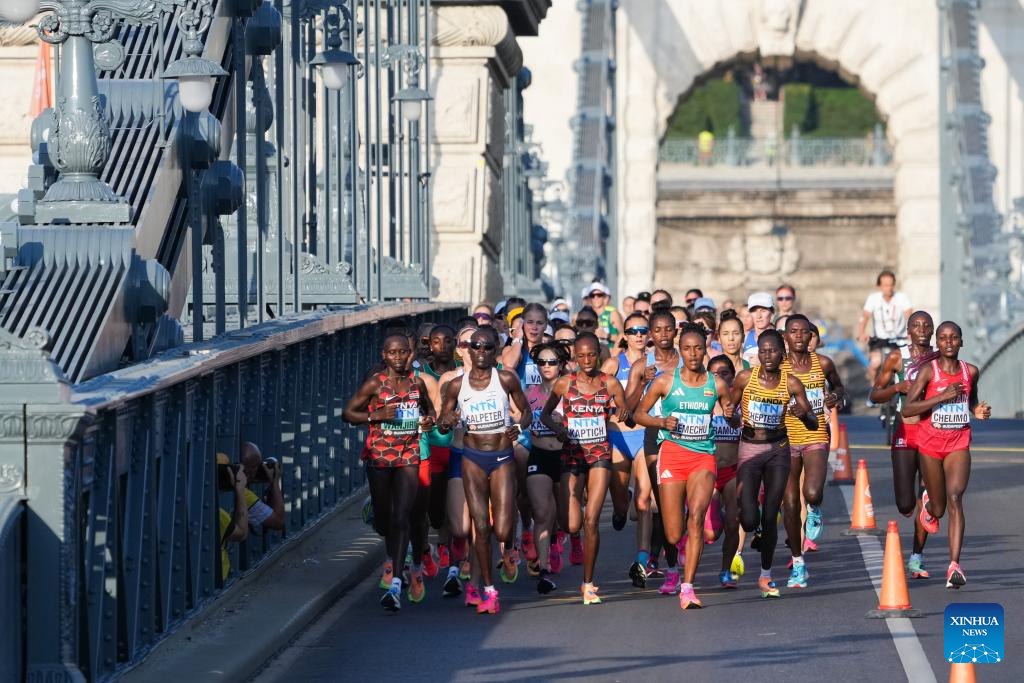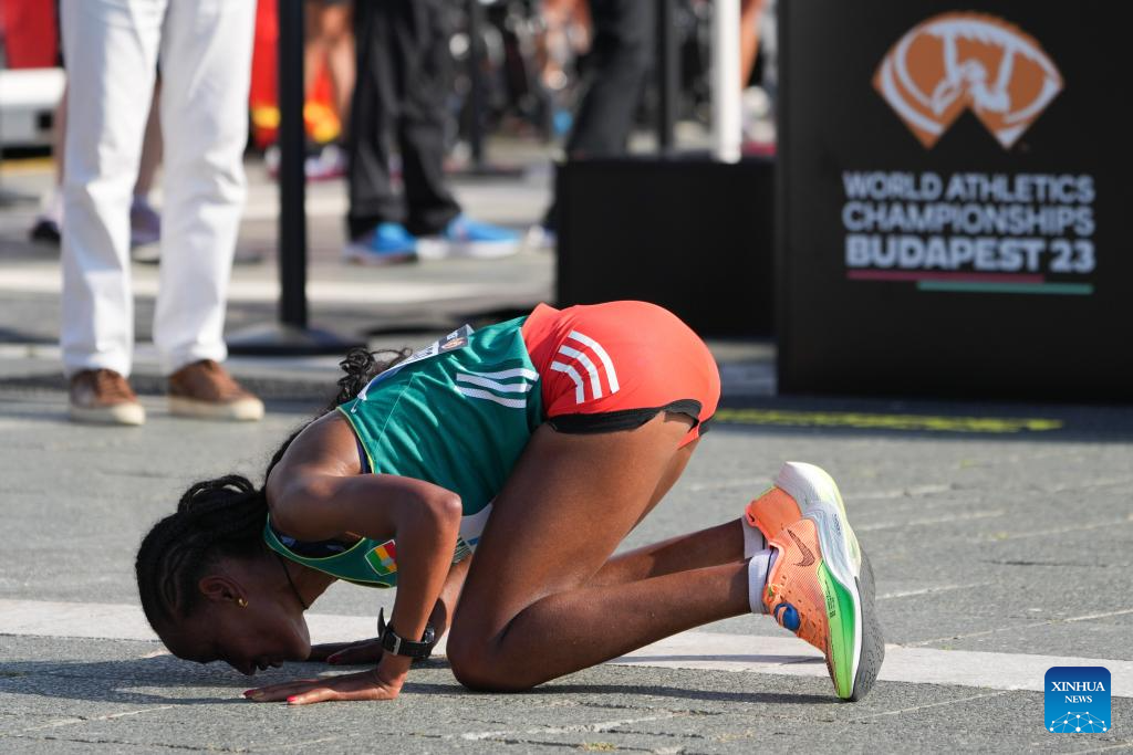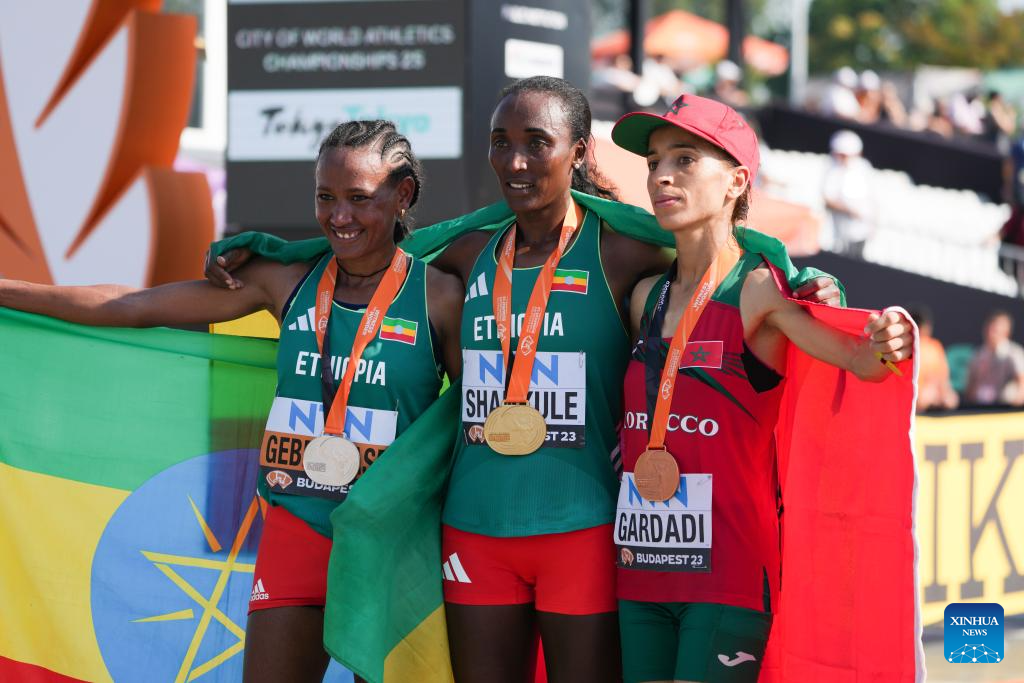 BUDAPEST, Aug. 26 (Xinhua) -- Ethiopians took the top two positions in the women's marathon at the World Athletics Championships as Amane Beriso Shankule clinched the title in her season best of 2:24:23.