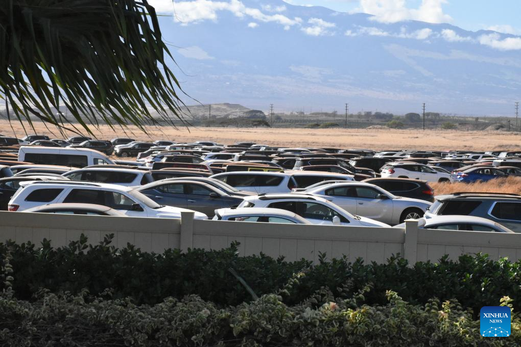 Photo taken on Aug. 24, 2023 shows rental cars sit unused in a parking lot near Kahului Airport in Maui, Hawaii, the United States. The devastating wildfires that ravaged the Hawaiian island of Maui were a bitter blow to the island's tourism industry, but local residents and business leaders expect more tourists will come back as the island embarks on a long road ahead for recovery. (Xinhua/Gao Shan)
