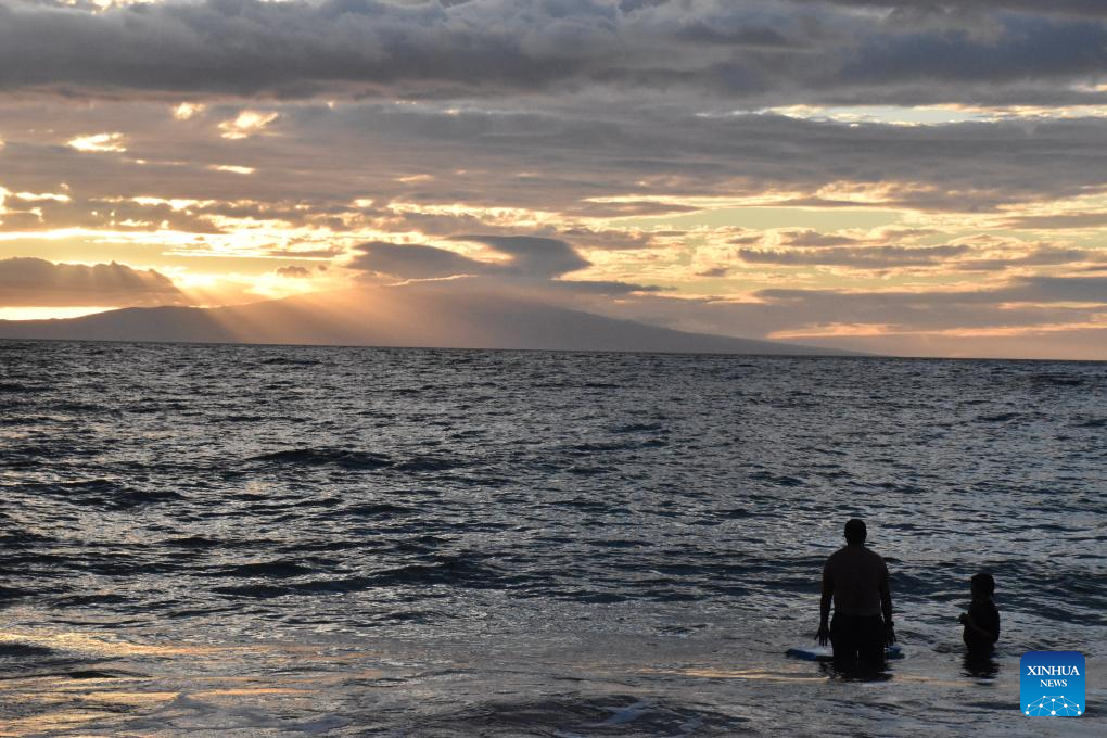 Photo taken on Aug. 23, 2023 shows people spending time at the seaside in Maui, Hawaii, the United States. The devastating wildfires that ravaged the Hawaiian island of Maui were a bitter blow to the island's tourism industry, but local residents and business leaders expect more tourists will come back as the island embarks on a long road ahead for recovery. (Photo by Zeng Hui/Xinhua)