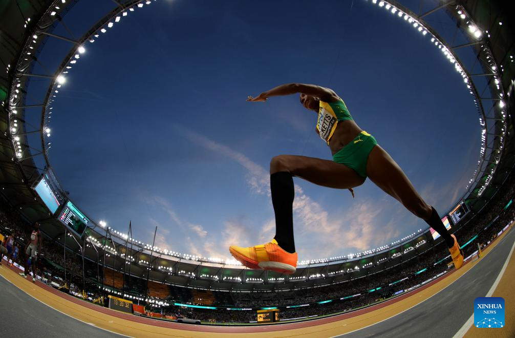 Shanieka Ricketts of Jamaica competes during the Women's Tripple Jump Final of the World Athletics Championships Budapest 2023 in Budapest, Hungary on Aug. 25, 2023. (Xinhua/Li Ming)