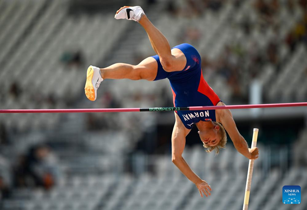 Norway's Markus Rooth competes during the Men's Decathlon Pole Vault of the World Athletics Championships Budapest 2023 in Budapest, Hungary on Aug. 26, 2023. (Xinhua/Song Yanhua)
