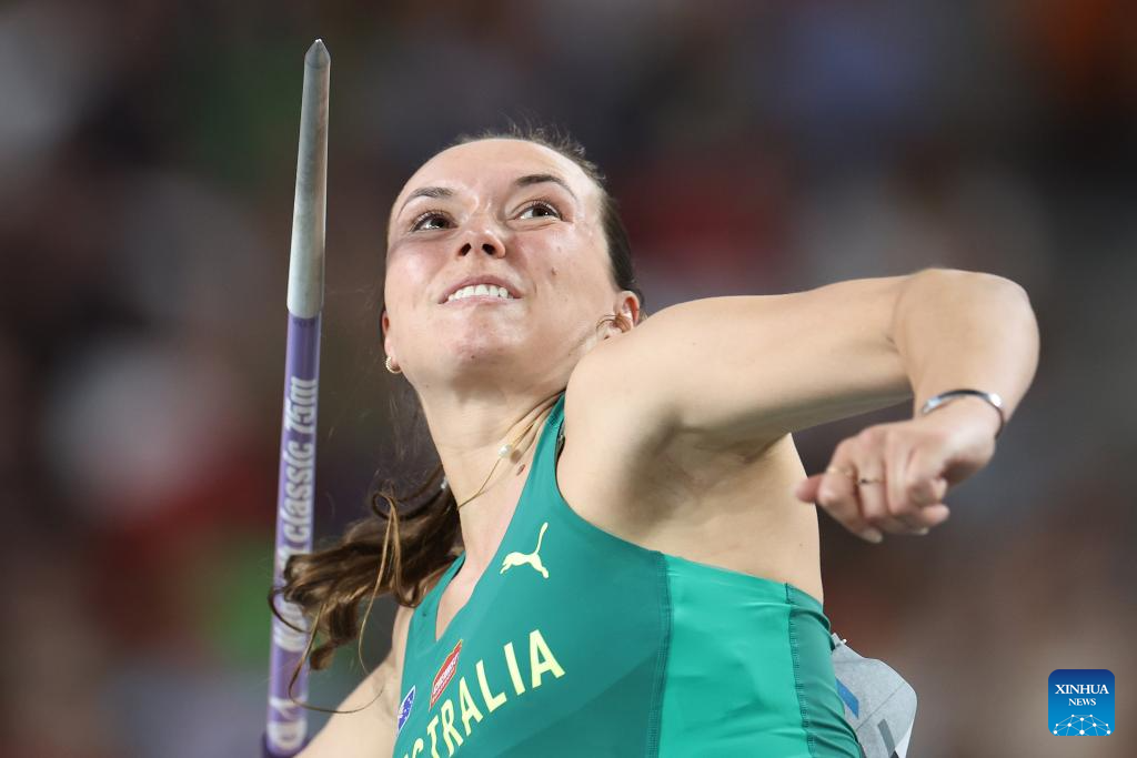 Australia's Mackenzie Little competes during the women's javelin throw final during the World Athletics Championships in Budapest, Hungary, Aug. 25, 2023. (Xinhua/Li Ming)