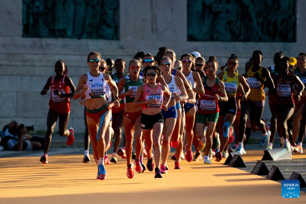 Athletes compete in the Women's Marathon at the World Athletics Championships in Budapest, Hungary, Aug. 26, 2023. (Xinhua/Meng Dingbo)