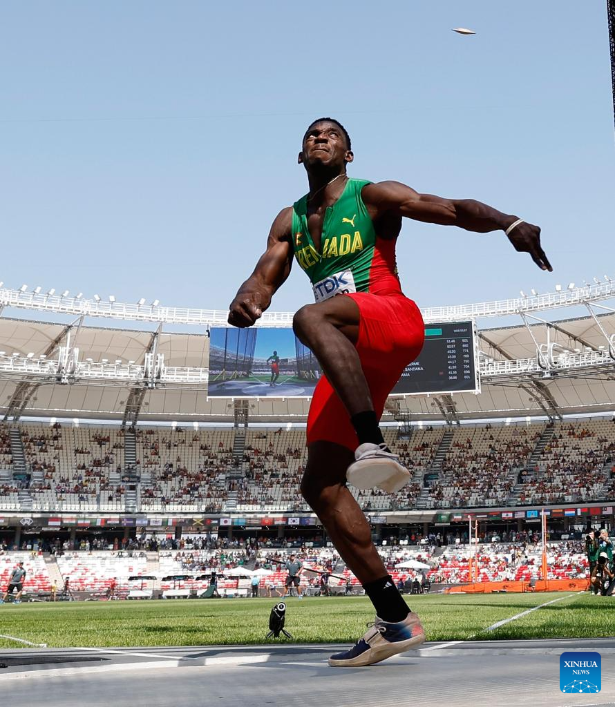 Lindon Victor of Grenada competes during the Men's Decathlon Discus Throw of the World Athletics Championships Budapest 2023 in Budapest, Hungary on Aug. 26, 2023. (Xinhua/Wang Lili)