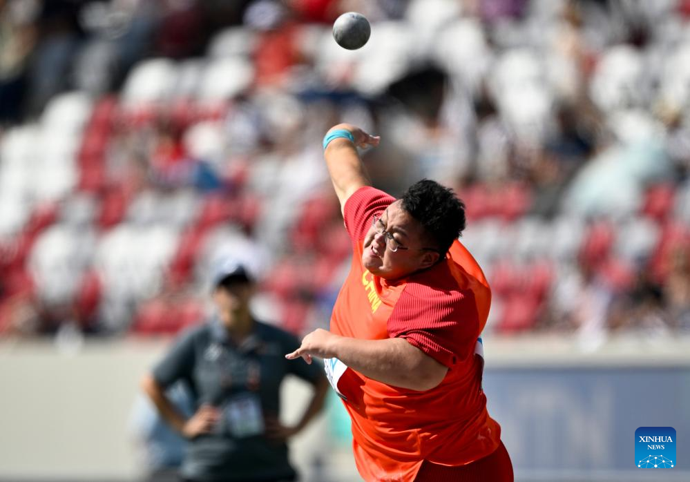Zhang Linru of China competes during the Women's Shot Put Qualification at the World Athletics Championships in Budapest, Hungary, Aug. 26, 2023. (Xinhua/Wang Lili)