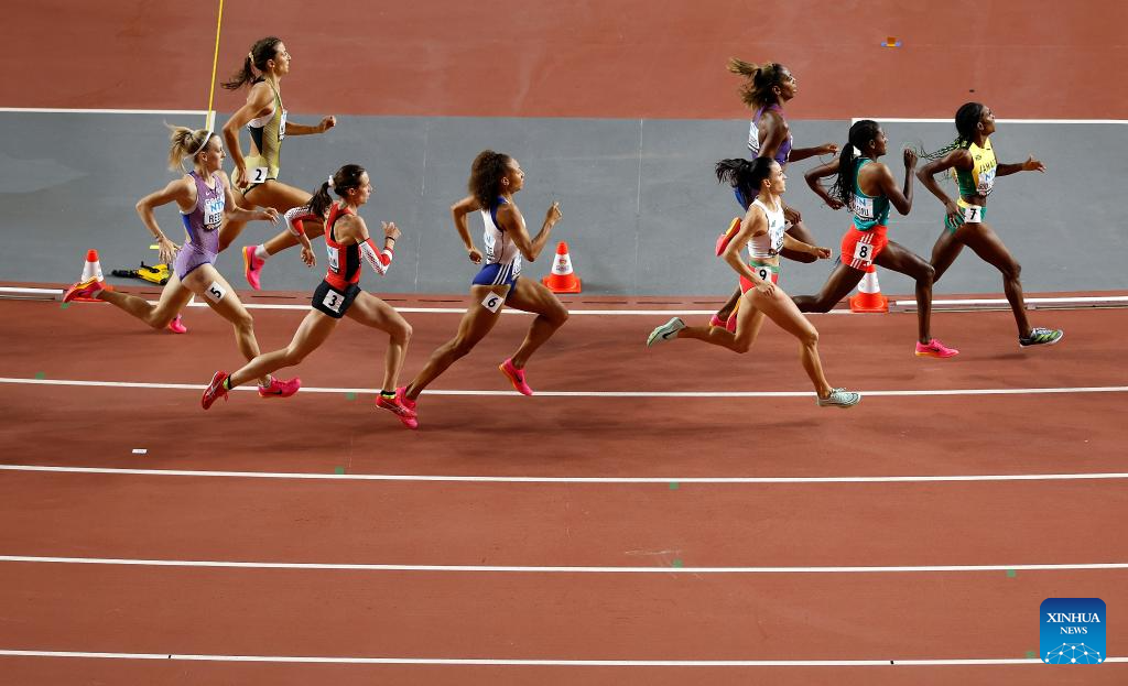 Keely Hodgkinson of Great Britain (1st, R) competes during the Women's 800m Semi-Final of the World Athletics Championships Budapest 2023 in Budapest, Hungary on Aug. 25, 2023. (Xinhua/Meng Dingbo)