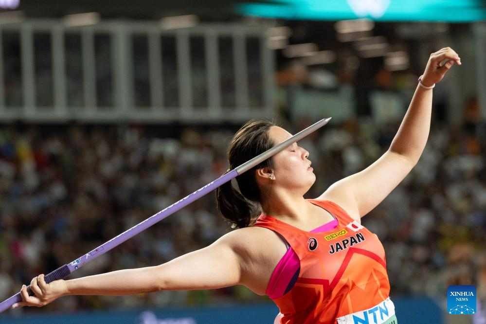 Japan's Kitaguchi Haruka competes during the women's javelin throw final during the World Athletics Championships in Budapest, Hungary, Aug. 25, 2023. (Xinhua/Meng Dingbo)