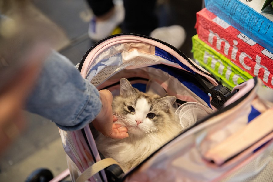 A cat is seen during the Cat Lovers' Festival in Sydney, Australia on Aug. 26, 2023. (Xinhua/Hu Jingchen)